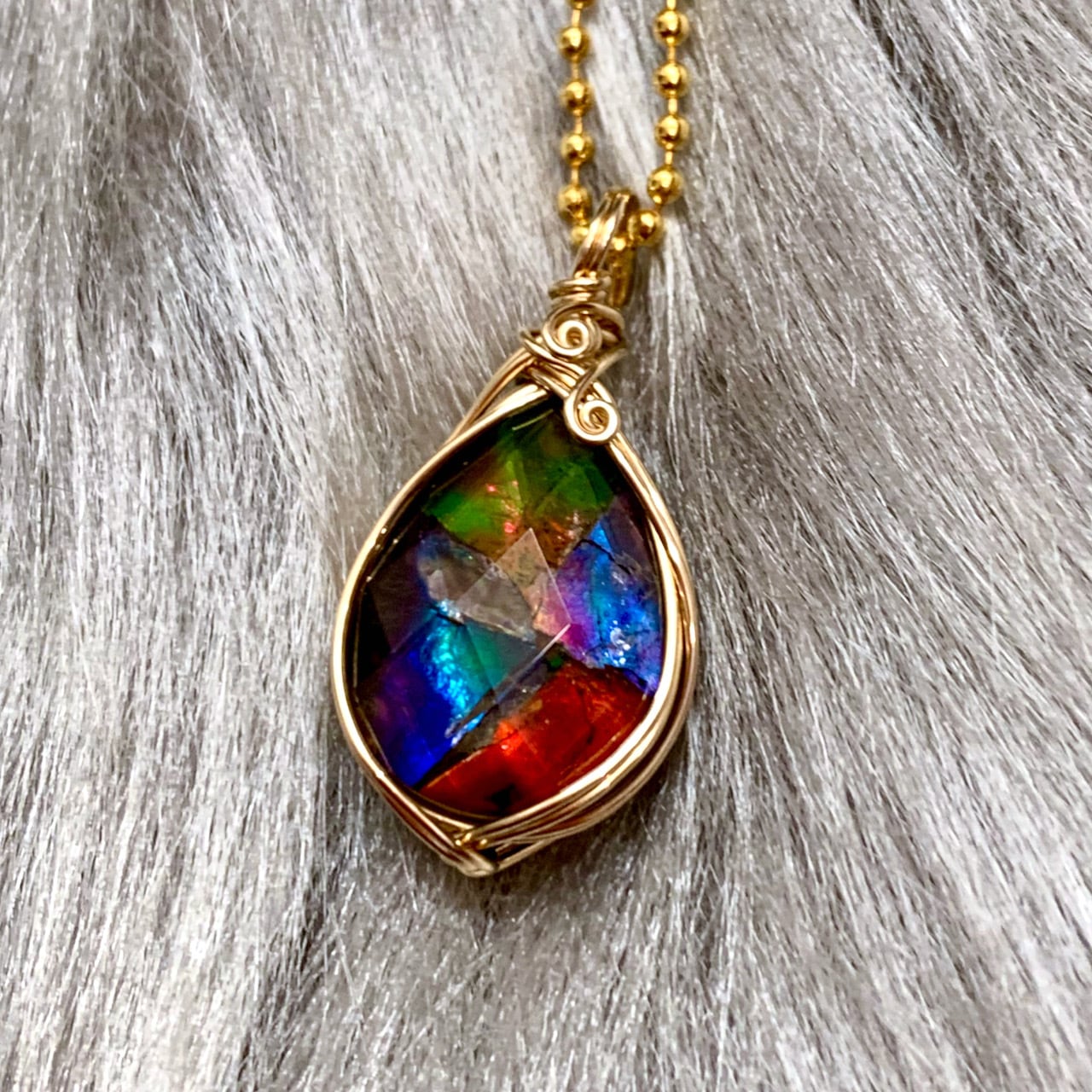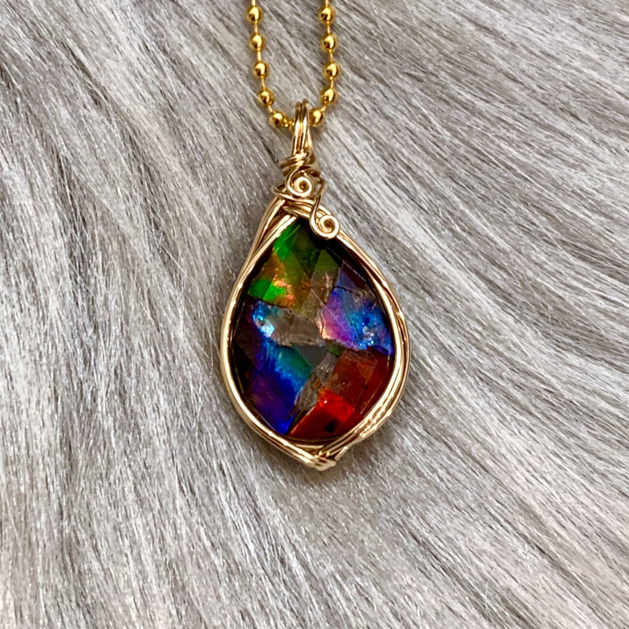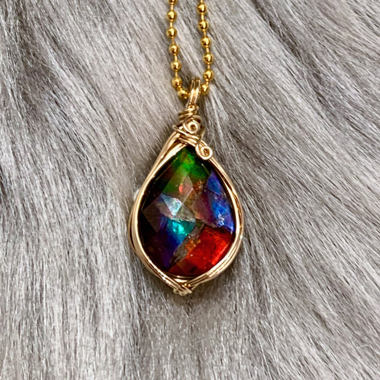 アンモライト モザイク ワイヤーラップペンダントAWP-21